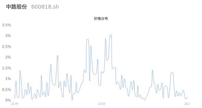 600818中路股份2024年04月24日成交15.68万手,成交金额3.69亿元,相较昨日缩量1.65万手,换手率6.59%,成交清淡。