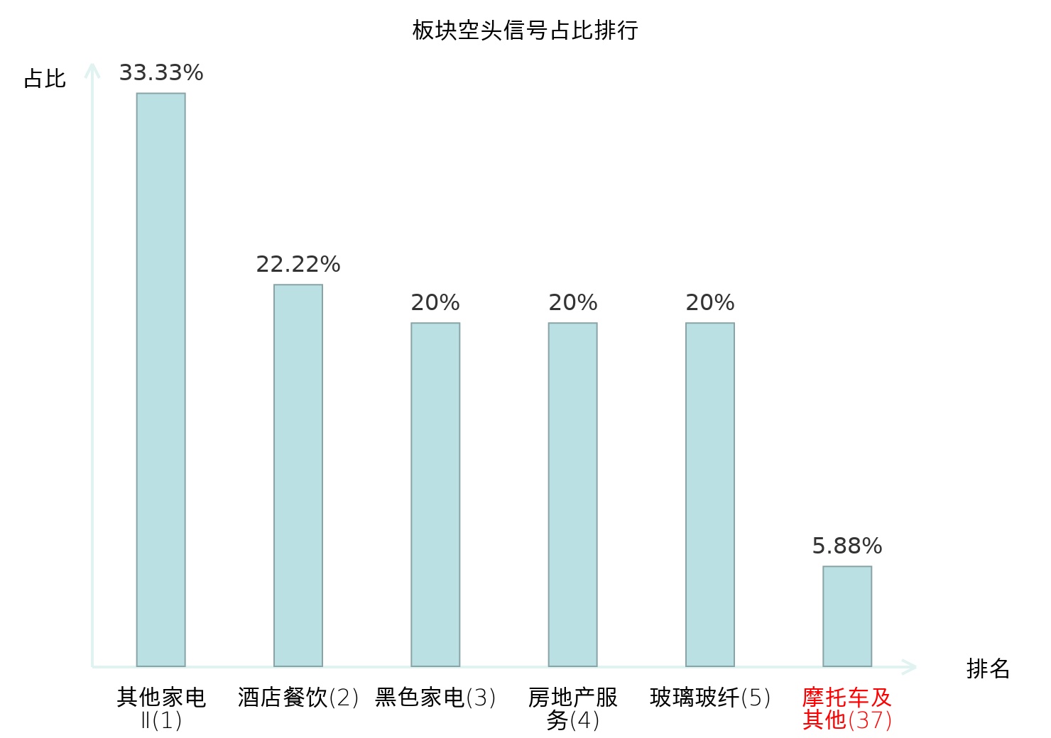 全市场所有行业板块中主力空头信号占比排名中,其他家电Ⅱ板块位居第一。家居用品板块名次提升最快,较昨日上升111位。
