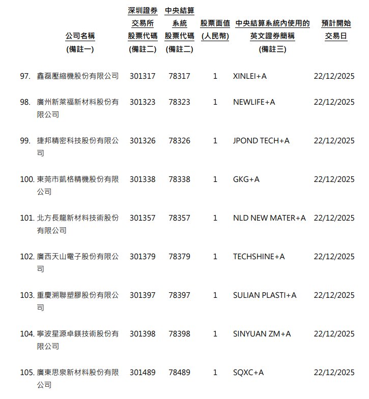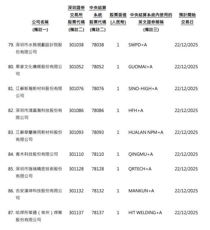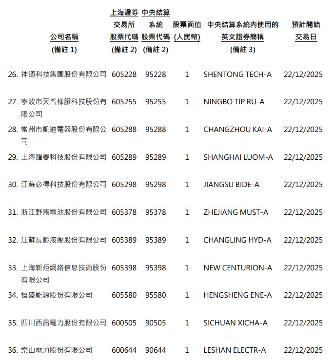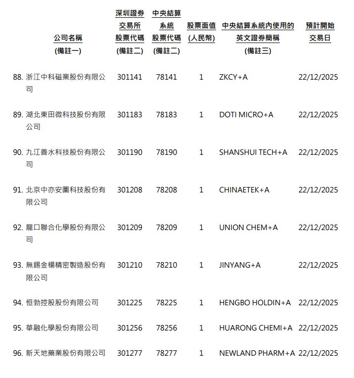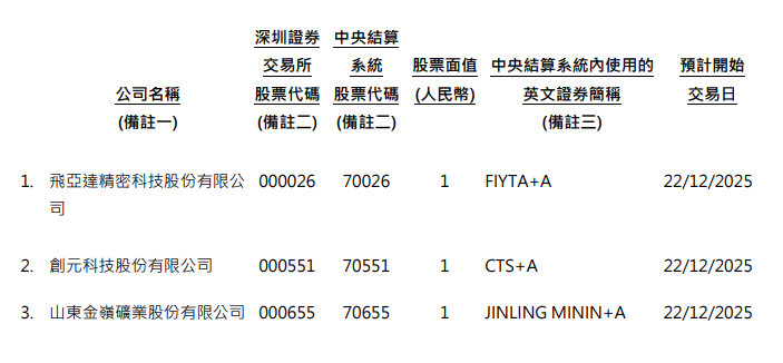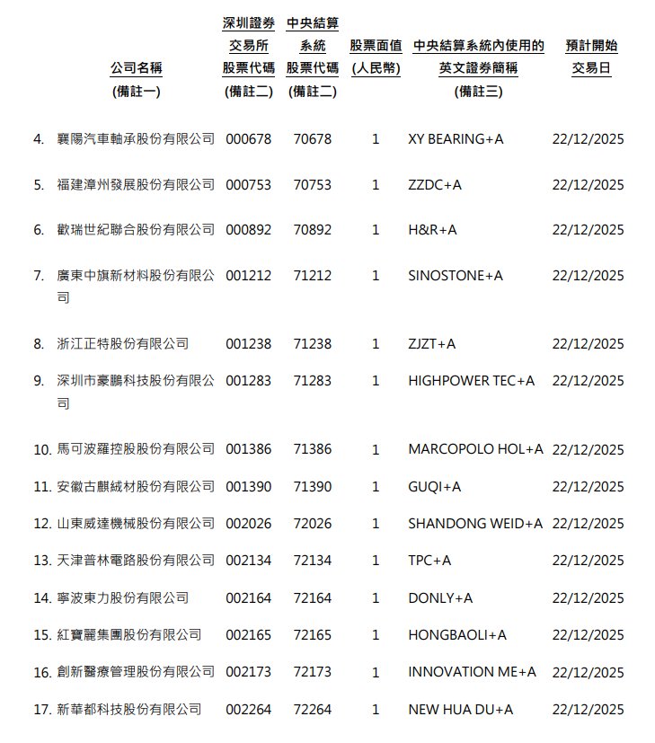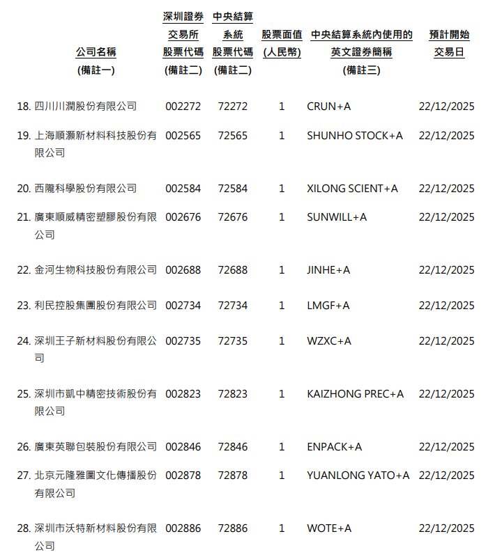交大昂立(600530.SH)、飞亚达(000026.SZ)等181只股票获纳入沪深股通 12月22日生效