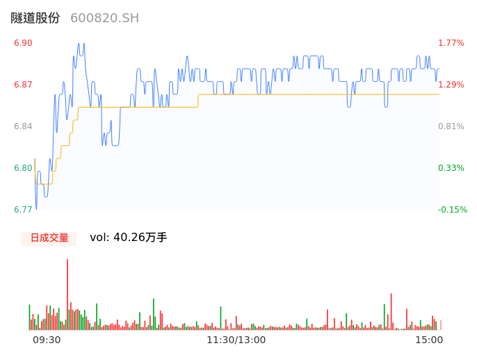 04月25日,隧道股份收报6.88,股价涨幅1.47%,成交金额2.76亿元,换手率1.28%。