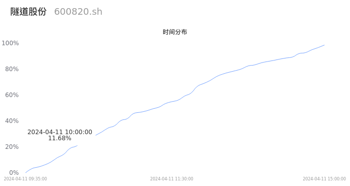 600820隧道股份2024年04月11日成交31.23万手,成交金额2.04亿元,相较昨日放量5.04万手,换手率0.99%,成交清淡。