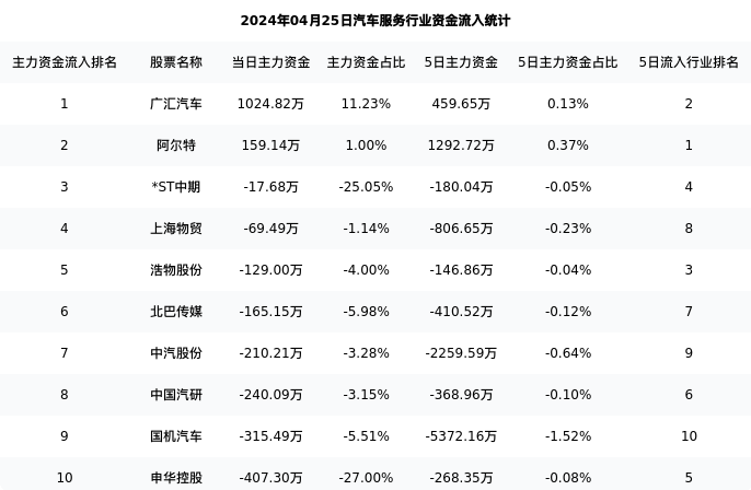 从主力资金流向来看,汽车服务行业今日主力资金流入1.40亿元,在所有申万二级行业中排名:118/131。