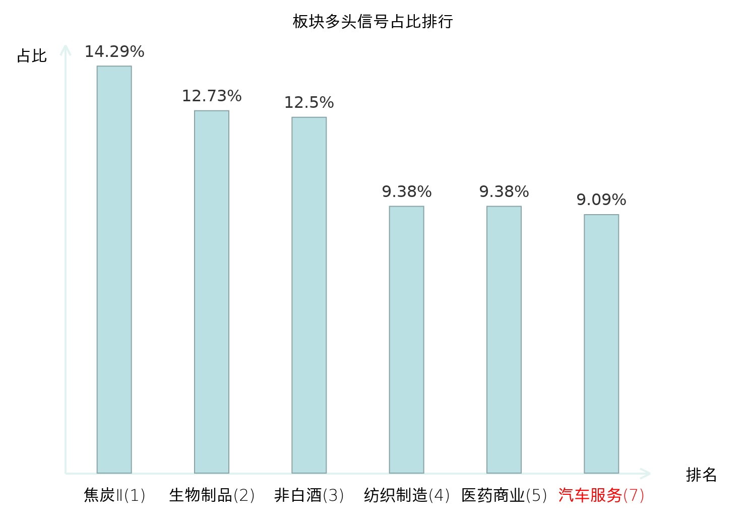 全市场所有行业板块中主力多头信号占比排名中,焦炭Ⅱ板块位居第一。焦炭Ⅱ板块名次提升最快,较昨日上升120位。