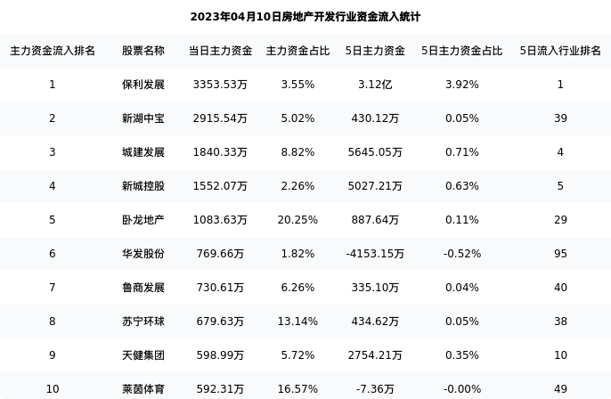下表为今日行业内流入前10股票的信息