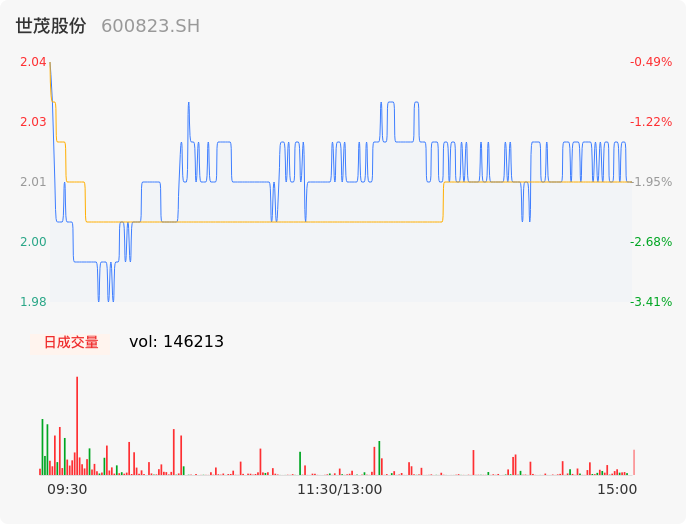 04月24日,世茂股份收报2.02,股价涨幅-1.46%,成交金额2932.84万元,换手率0.39%。