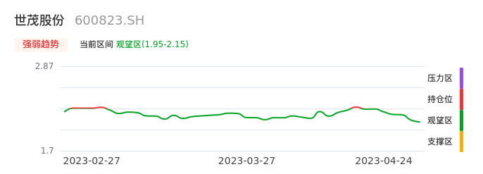 我们来看一下该股的九方特色指标强弱趋势的情况:世茂股份自04月14日从持仓区下穿到观望区,股价近期持续走弱。短期已经进入空头行情,且下跌动能仍未衰竭。建议继续谨慎观望。