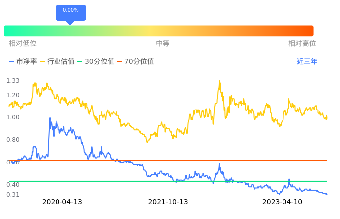 世茂股份当前市净率PB为0.31,在所属的房地产开发中,市净率PB排3,前五名分别为荣盛发展市净率0.22、金科股份市净率0.27、世茂股份市净率0.31、中南建设市净率0.35、福星股份市净率0.35。世茂股份当前市净率PB为0.31,超过近3年0.00%的历史数据。