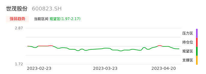 我们来看一下该股的九方特色指标强弱趋势的情况:世茂股份自04月14日从持仓区下穿到观望区,股价近期持续走弱。短期已经进入空头行情,且下跌动能仍未衰竭。建议继续谨慎观望。