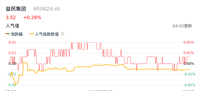 04月02日,益民集团收报3.52,股价涨幅0.28%,成交金额4468.67万元,换手率1.20%。