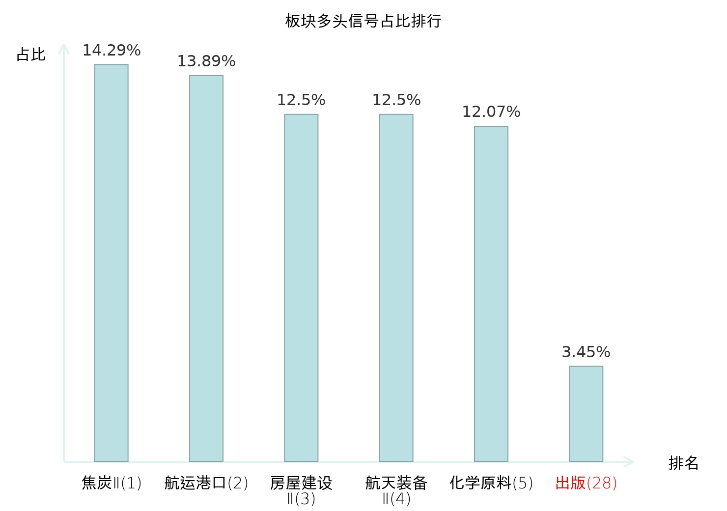 全市场所有行业板块中主力多头信号占比排名中,焦炭Ⅱ板块位居第一。焦炭Ⅱ板块名次提升最快,较昨日上升120位。
