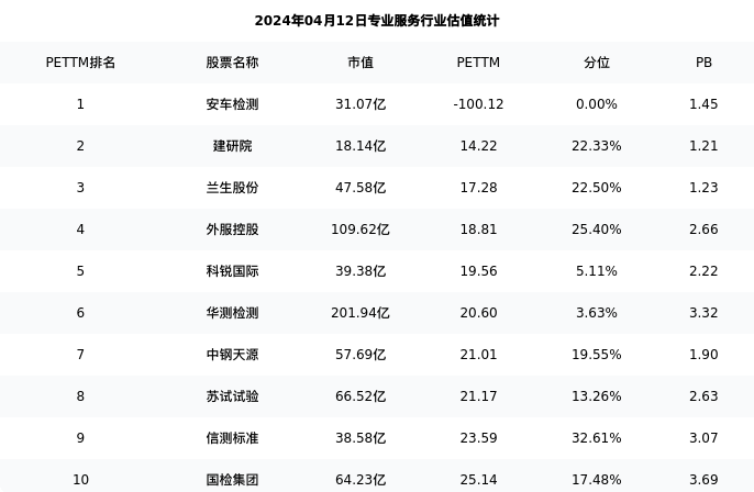 兰生股份最新报告期数据为年报,下表汇总了专业服务行业内市值靠前的公司年报主要经营数据
