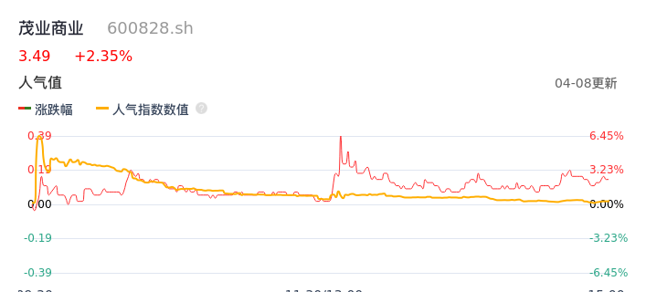 04月08日,茂业商业收报3.49,股价涨幅2.35%,成交金额1.10亿元,换手率1.83%。