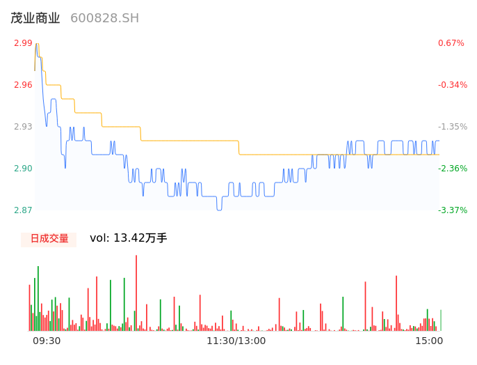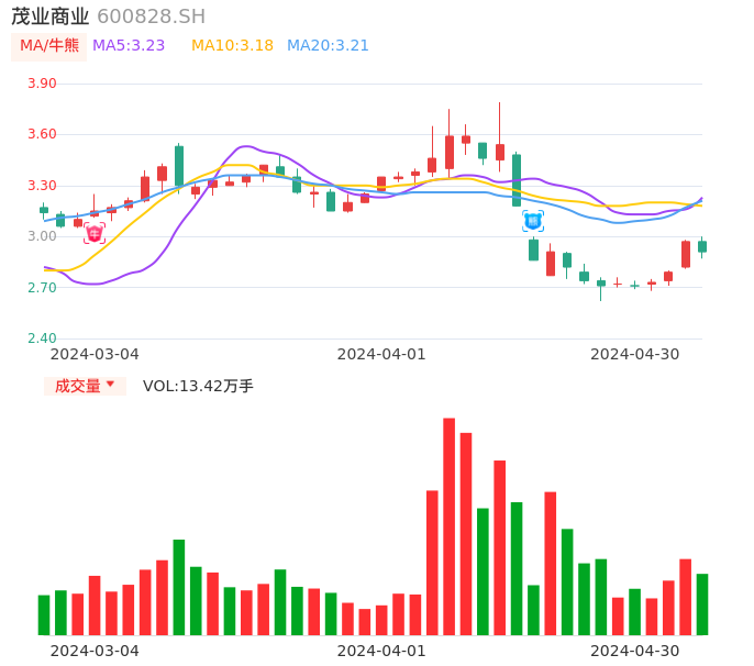 04月30日,茂业商业收报2.91,股价涨幅-2.02%,成交金额3907.95万元,换手率0.78%。