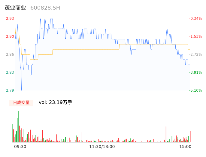 04月18日,茂业商业收报2.85,股价涨幅-3.06%,成交金额6677.56万元,换手率1.34%。
