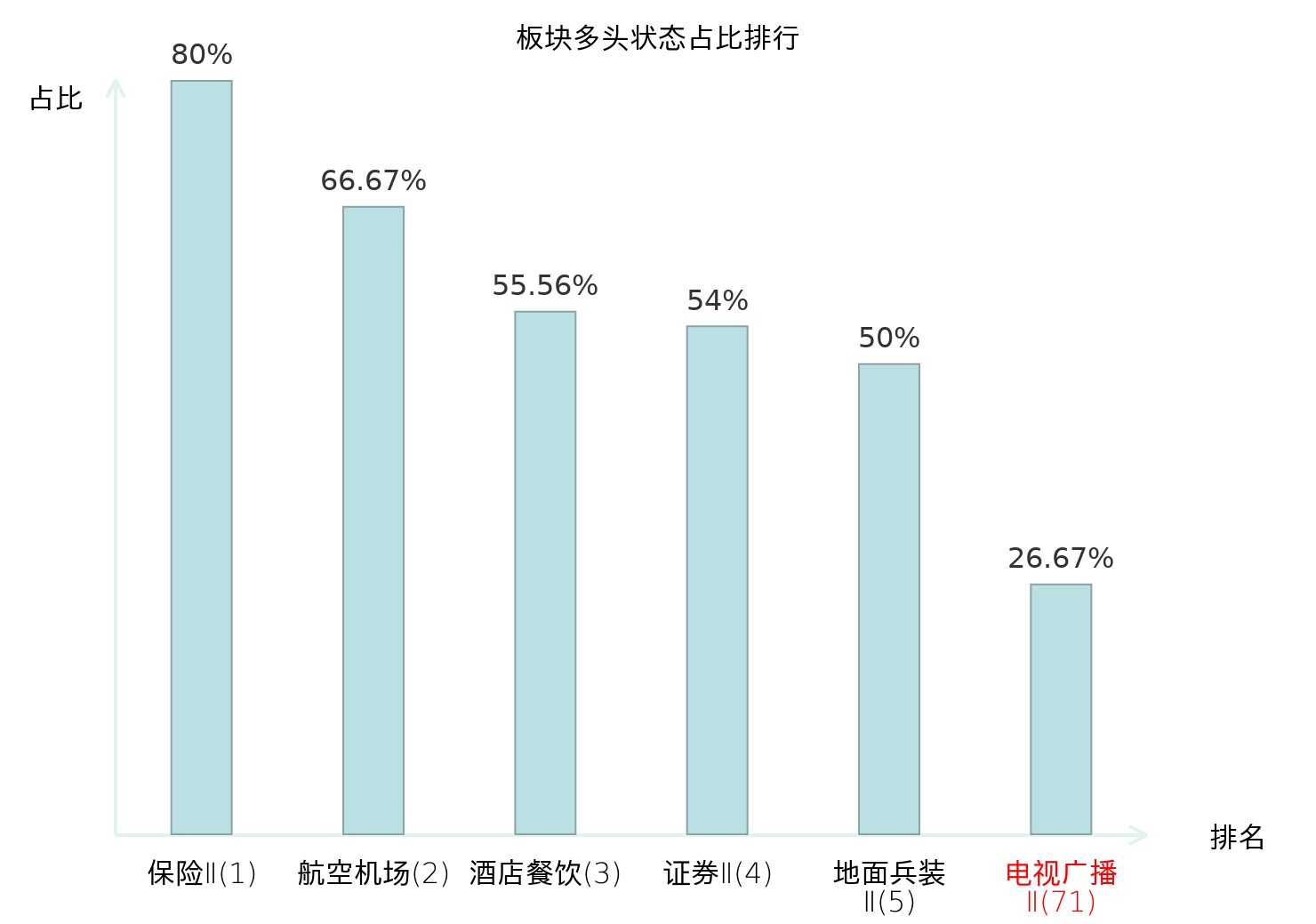 全市场所有行业板块中主力多头状态占比排名中,保险Ⅱ板块位居第一。特钢Ⅱ板块名次提升最快,较昨日上升69位。