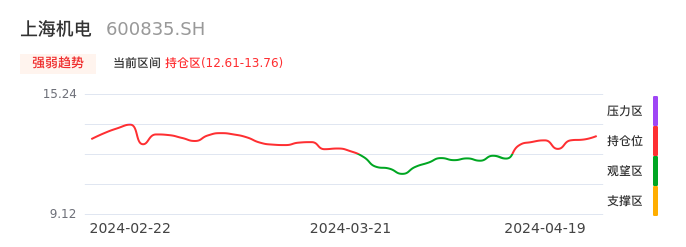 我们来看一下该股的九方特色指标强弱趋势的情况:上海机电自04月11日从观望区上穿到持仓区。股价近期在多头区域持续强势上扬,上升动能仍较为充足,可积极关注。后续重点关注上方压力位:13.76元是否能突破上攻。
