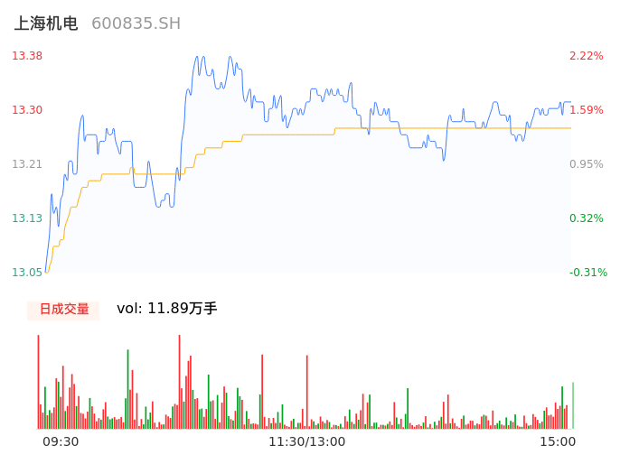 04月19日,上海机电收报13.30,股价涨幅1.60%,成交金额1.58亿元,换手率1.47%。