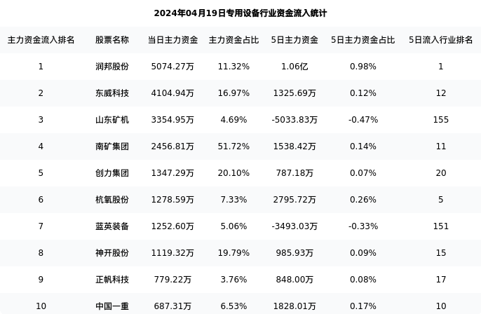 从主力资金流向来看,专用设备行业今日主力资金流入39.29亿元,在所有申万二级行业中排名:28/131。