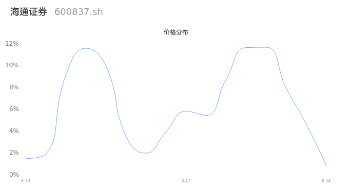 根据成交分布分析,该股票当天放量成交,成交清淡。时间上看,早盘前半小时成交量占据当天总成交量的28.31%;价格上看,成交呈现右偏峰。成交分布分析主要研究股票成交的分布特性,不具有预测功能,请知悉。