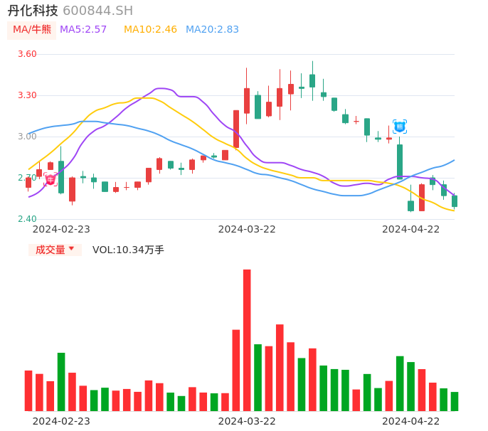 04月22日,丹化科技收报2.49,股价涨幅-3.11%,成交金额2589.01万元,换手率1.26%。