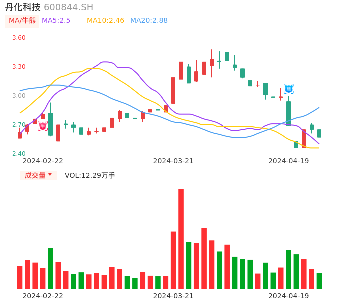 04月19日,丹化科技收报2.57,股价涨幅-3.02%,成交金额3176.51万元,换手率1.49%。