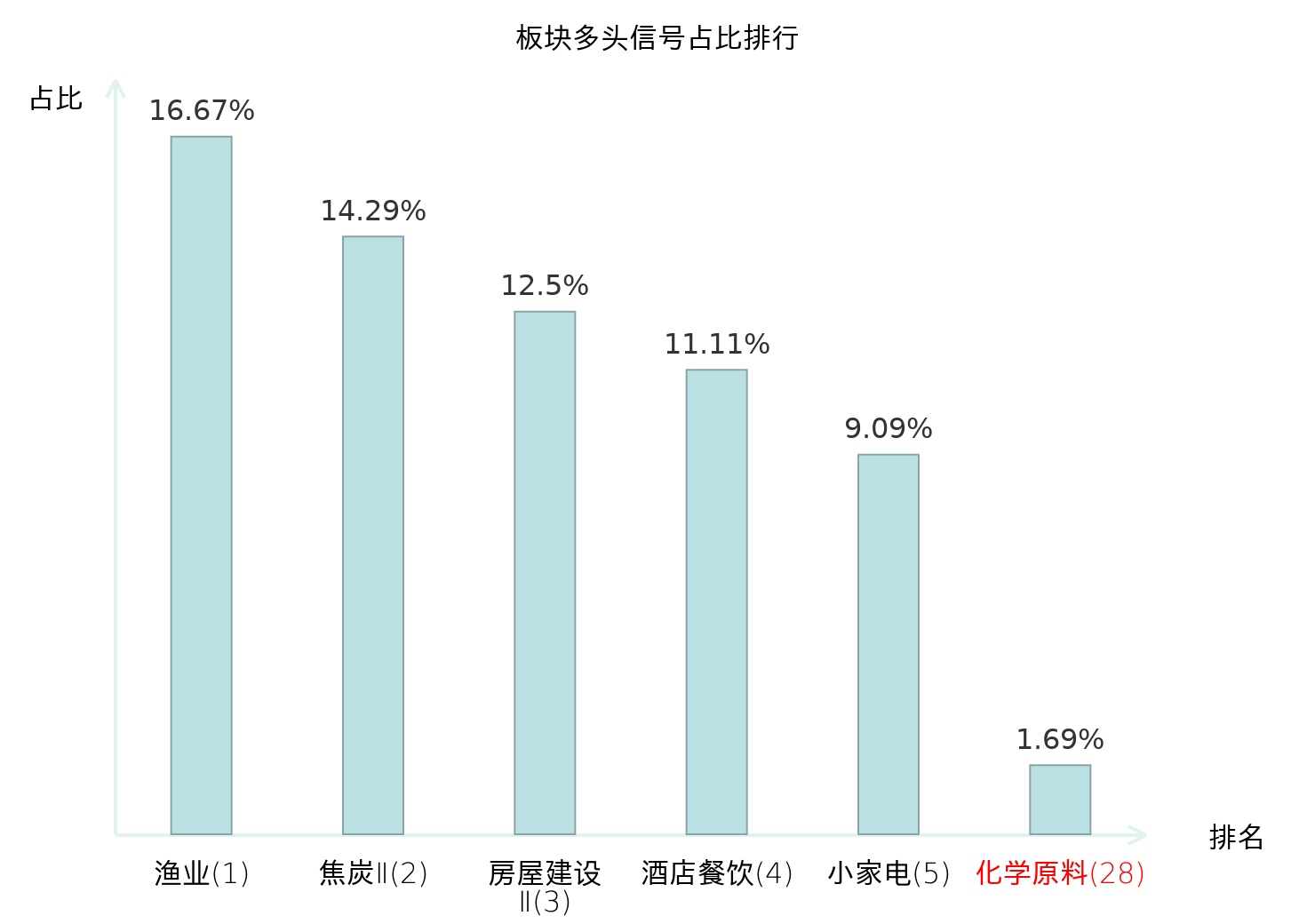 从主力宝信号数据分析,金煤科技所属的化学原料板块中共1只股票发出主力多头信号,主力多头信号占比在全行业中排名第28位,较昨日一致。较高的排名表明主力对于该板块当日整体看多意愿相对较强;排名维持不变反映主力对该板块态度未发生明显变化。全市场所有行业板块中主力多头信号占比排名中,渔业板块位居第一;渔业板块名次提升最快,较昨日上升121位。这些变动揭示了主力资金在不同行业间的分布差异及动态调整趋势,为投资者评估板块相对强度和潜在关注方向提供了客观参考依据。