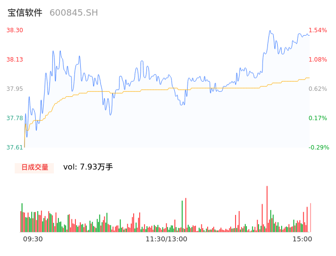 04月17日,宝信软件收报38.27,股价涨幅1.46%,成交金额3.02亿元,换手率0.46%。