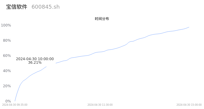 600845宝信软件2024年04月30日成交11.36万手,成交金额4.69亿元,相较昨日缩量5045手,换手率0.65%,成交清淡。