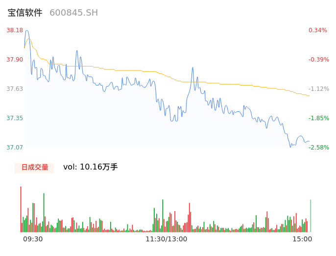 04月12日,宝信软件收报37.11,股价涨幅-2.47%,成交金额3.82亿元,换手率0.59%。