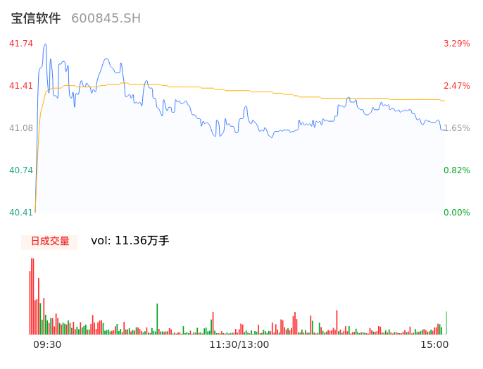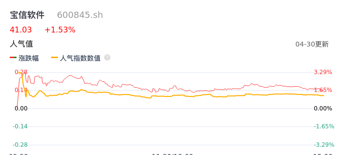 04月30日,宝信软件收报41.03,股价涨幅1.53%,成交金额4.69亿元,换手率0.65%。