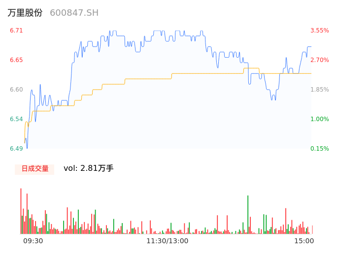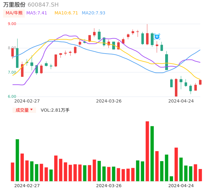 04月24日,万里股份收报6.68,股价涨幅3.09%,成交金额1862.98万元,换手率1.83%。