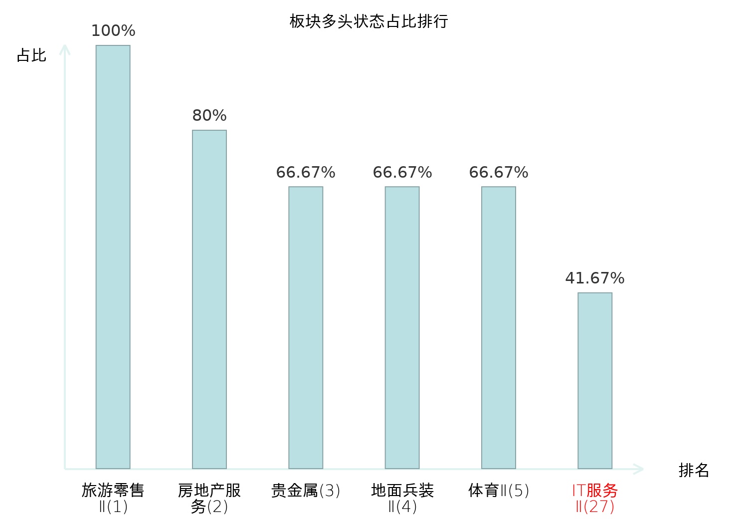 全市场所有行业板块中主力多头状态占比排名中,旅游零售Ⅱ板块位居第一。个护用品板块名次提升最快,较昨日上升70位。