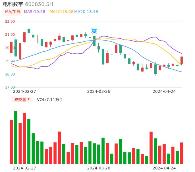 04月24日,电科数字收报19.33,股价涨幅3.70%,成交金额1.36亿元,换手率1.17%。