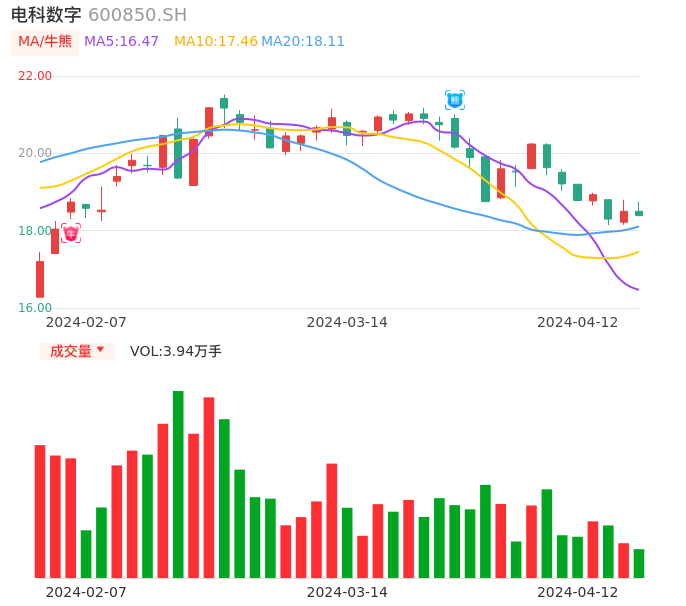 值得注意的是:2024年04月国海证券的刘熹分析师,首次发布关于电科数字的研究报告,标题为:电科数字(600850)2023年年报点评:积极布局“新质生产力” 业务高质量增长可期。