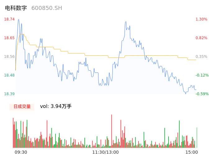 04月12日,电科数字收报18.39,股价涨幅-0.59%,成交金额7305.63万元,换手率0.65%。