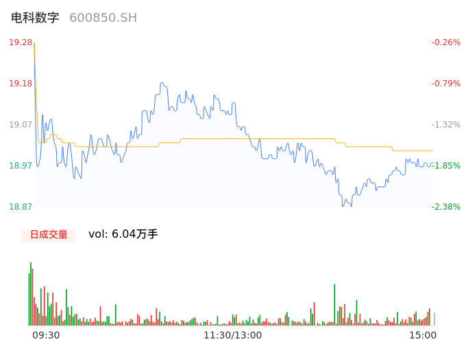 04月25日,电科数字收报18.97,股价涨幅-1.86%,成交金额1.15亿元,换手率0.99%。