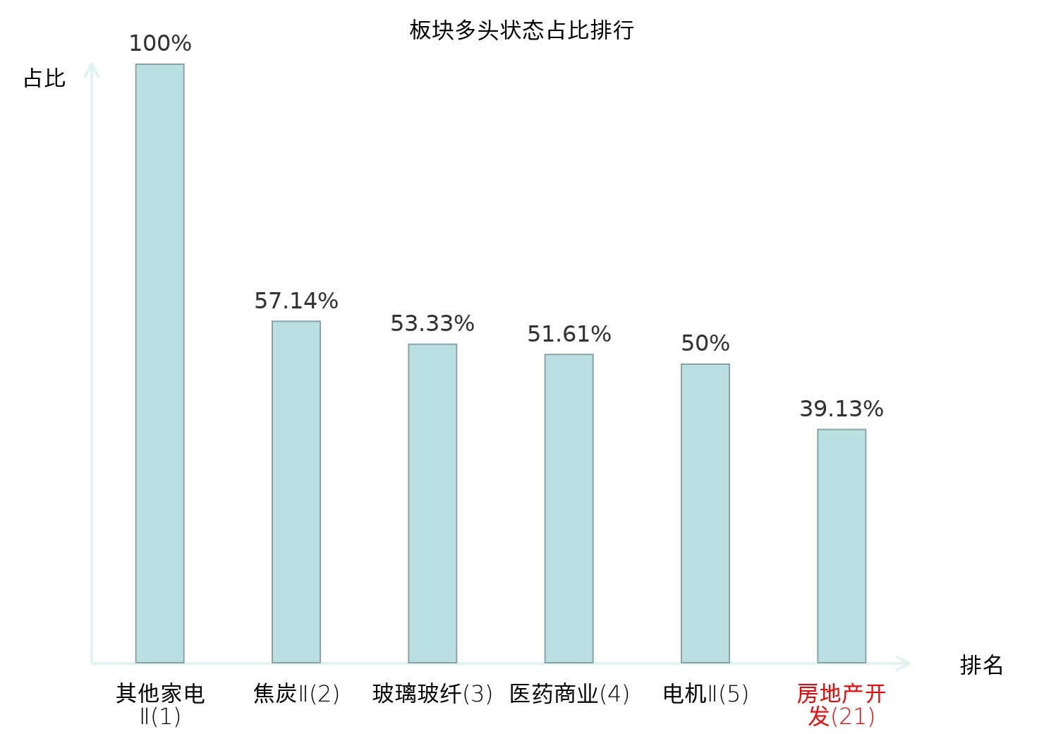 全市场所有行业板块中主力多头状态占比排名中,其他家电Ⅱ板块位居第一。白色家电板块名次提升最快,较昨日上升67位。