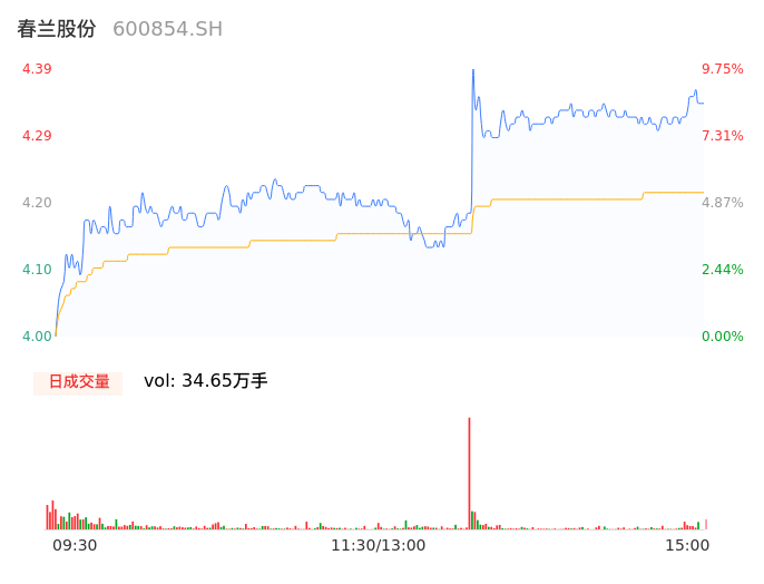 04月17日,春兰股份收报4.34,股价涨幅8.50%,成交金额1.46亿元,换手率6.67%。
