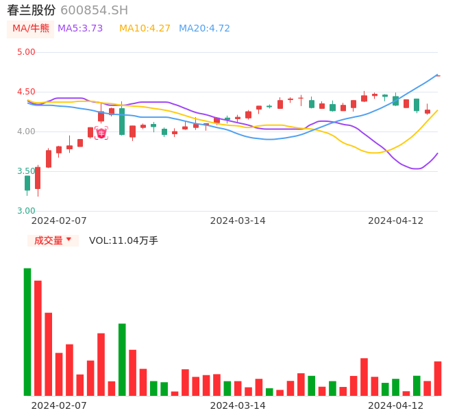 04月12日,春兰股份收报4.70,股价涨幅10.07%,成交金额5190.82万元,换手率2.13%。