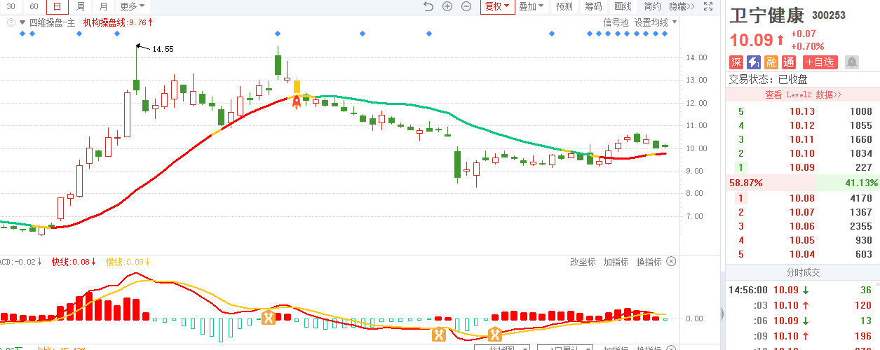 2)卫宁健康-四维操盘-近期出现火箭信号且底部量柱由绿转红