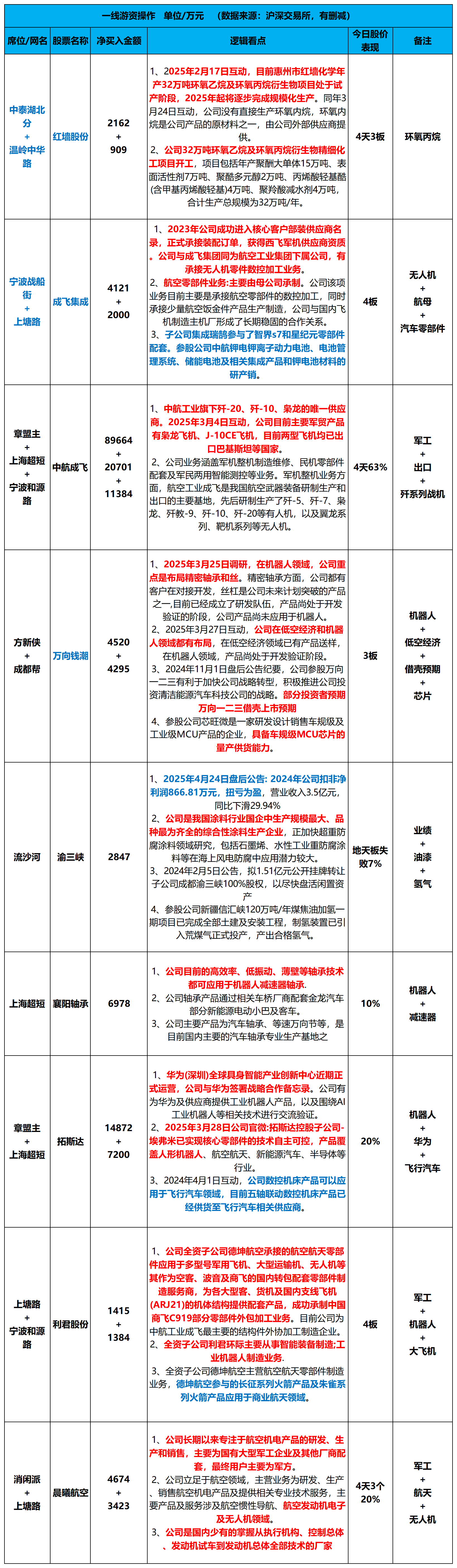 章盟主:买入中航成飞8.3亿,买入拓斯达1.4亿