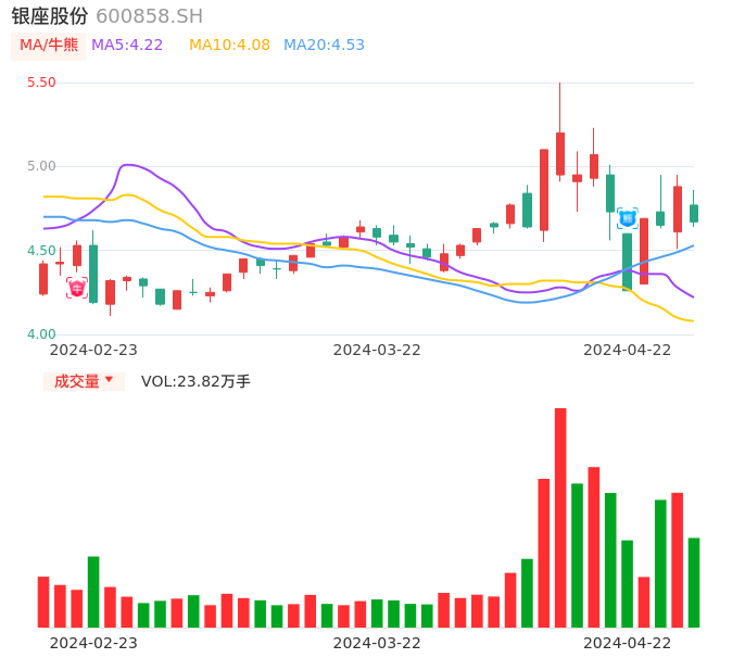 值得注意的是:2024年04月海通国际的李宏科/汪立亭分析师,首次发布关于银座股份的研究报告,标题为:银座股份(600858)公司年报点评:23年净利扭亏 聚焦经营优化提效。