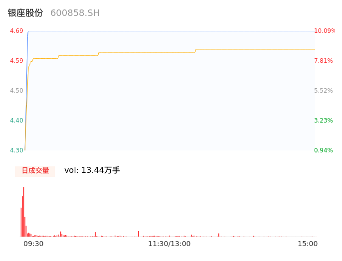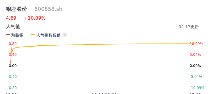 04月17日,银座股份收报4.69,股价涨幅10.09%,成交金额6217.26万元,换手率2.60%。
