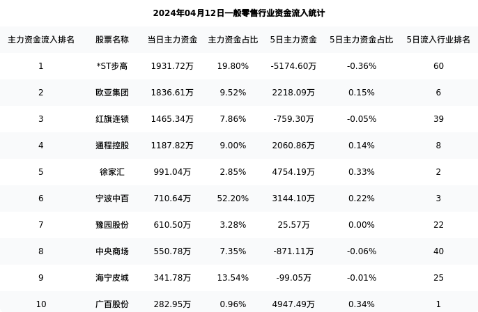 从主力资金流向来看,一般零售行业今日主力资金流入15.83亿元,在所有申万二级行业中排名:115/131。