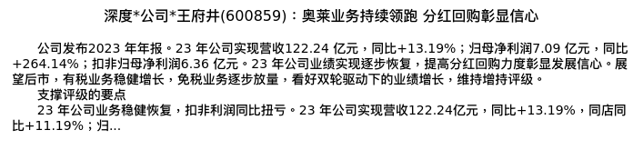 值得注意的是:2024年04月中银证券的李小民分析师,首次发布关于王府井的研究报告,标题为:深度*公司*王府井(600859):奥莱业务持续领跑 分红回购彰显信心。