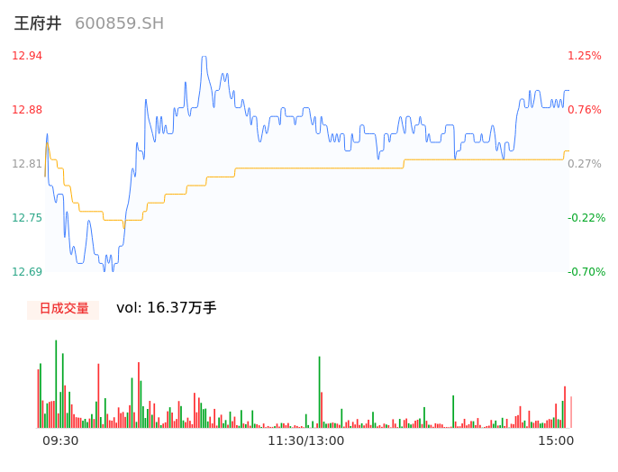 04月24日,王府井收报12.90,股价涨幅0.94%,成交金额2.10亿元,换手率1.50%。