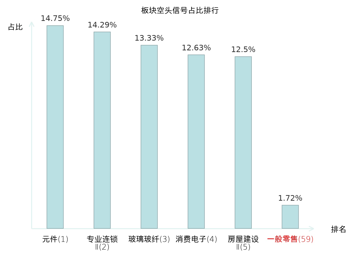 全市场所有行业板块中主力空头信号占比排名中,元件板块位居第一。电机Ⅱ板块名次提升最快,较昨日上升111位。