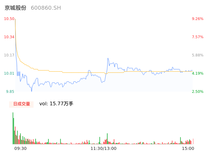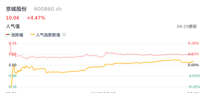 04月29日,京城股份收报10.04,股价涨幅4.47%,成交金额1.58亿元,换手率3.68%。