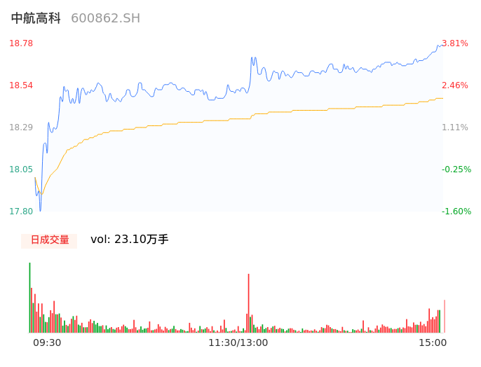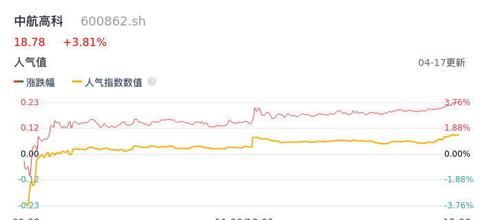 04月17日,中航高科收报18.78,股价涨幅3.81%,成交金额4.27亿元,换手率1.66%。