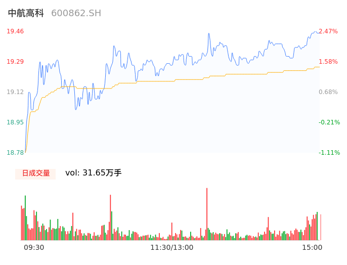 04月19日,中航高科收报19.45,股价涨幅2.42%,成交金额6.10亿元,换手率2.27%。